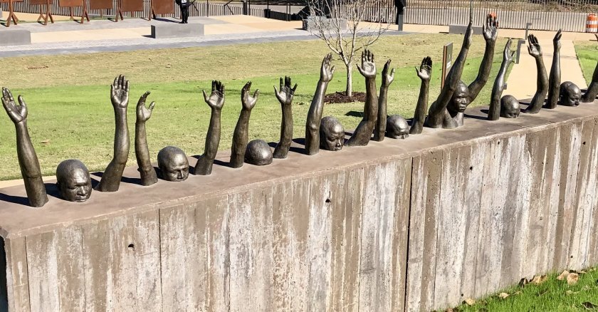 An exhibit at EJI’s Legacy Museum in Montgomery, Alabama, features more than 200 sculptures by Ghanaian sculptor Kwame Akoto-Bamfo memorializing those who died during the Middle Passage.